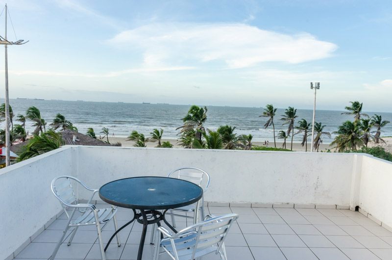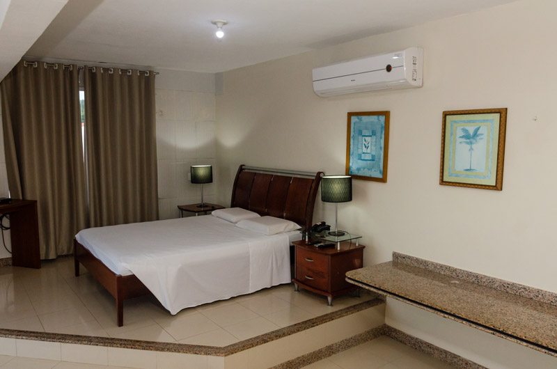 A nossa Cobertura é um quarto duplo casal, que possui uma ampla varanda com vista mar.