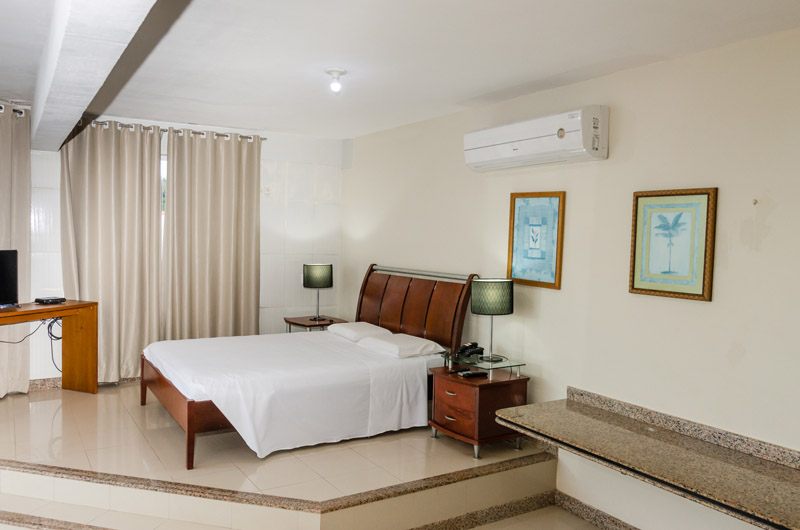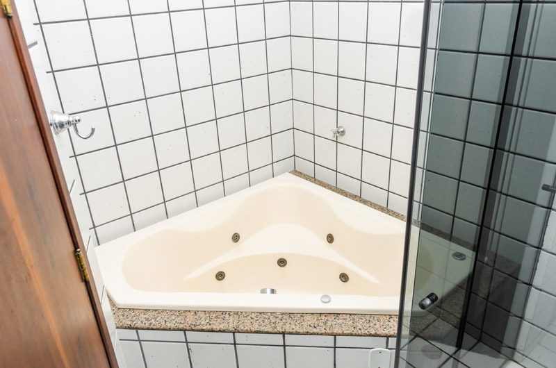 A nossa Suíte Master é um apartamento amplo, com banheira de hidromassagem e uma varanda com vista panorâmica para toda orla.